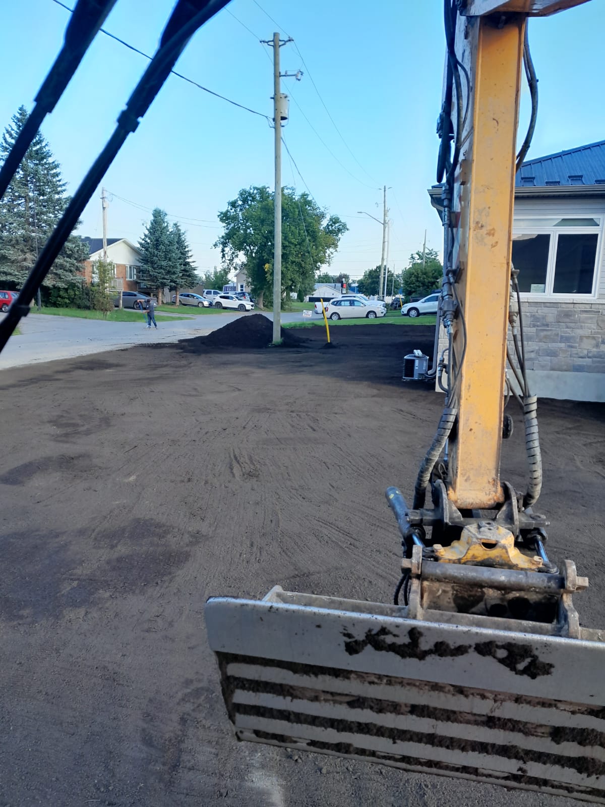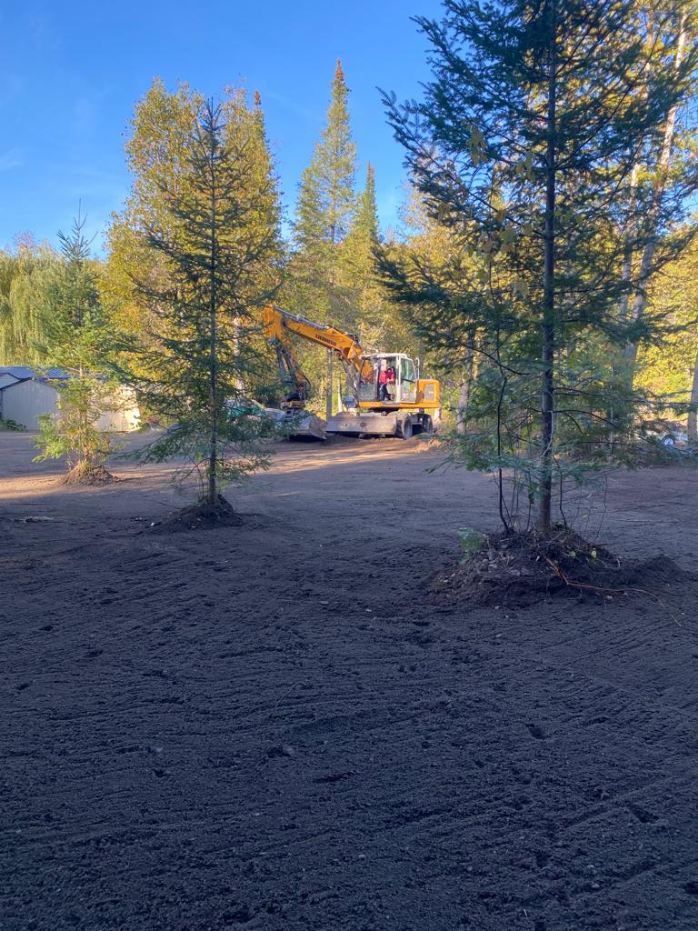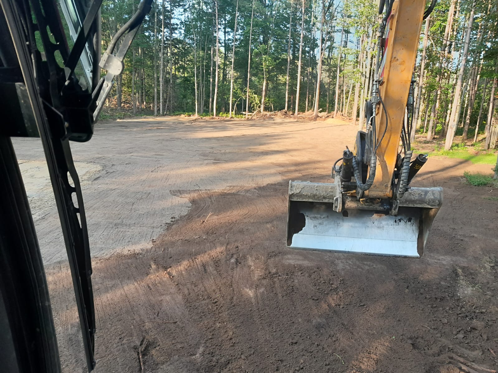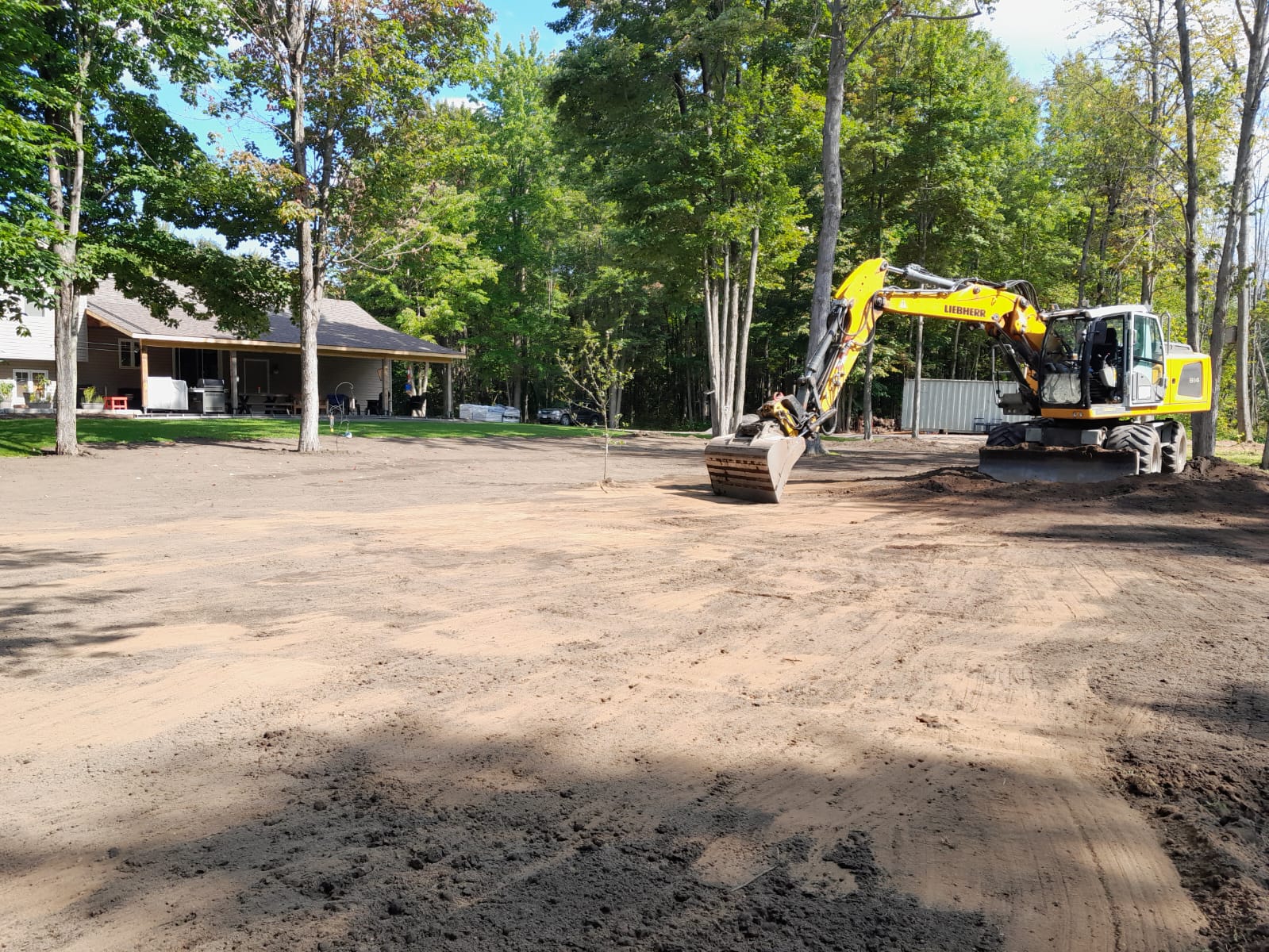 Fine grading Shaping the terrain to ensure proper drainage and creating slopes or contours for landscaping purposes.